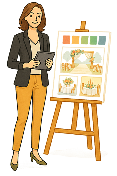 Completa i bozzetti aggiungendo dettagli con temi di colore, ispirazioni di design e informazioni logistiche. Offri al cliente un'esperienza unica e coinvolgente.
